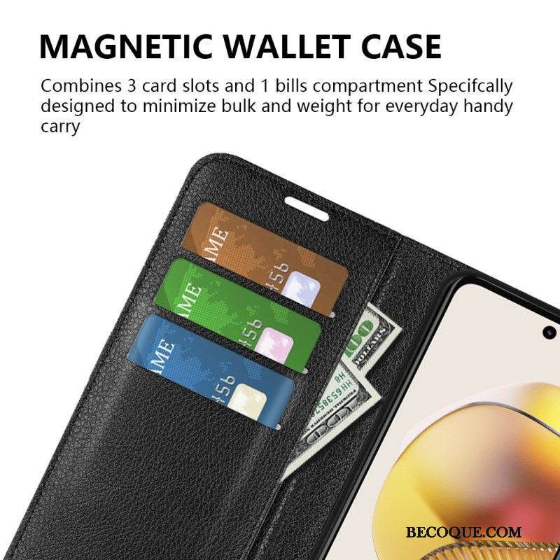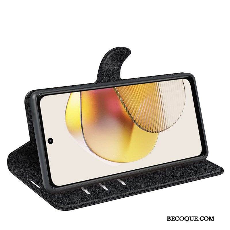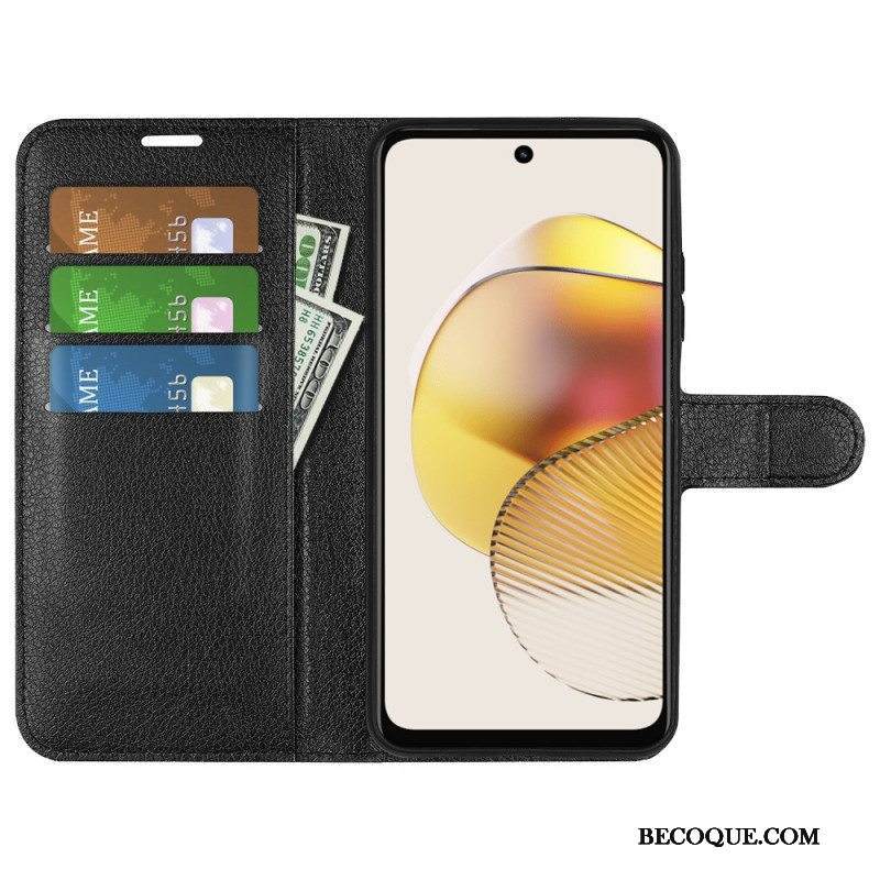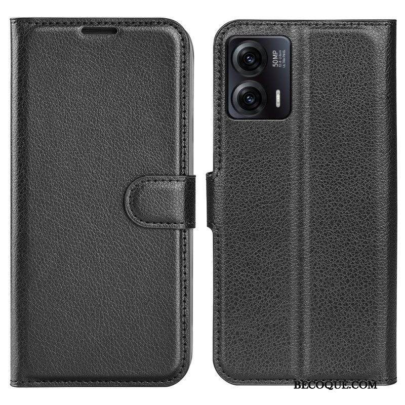 Nahkakotelo Moto G73 5G Klassinen Litsi-nahkaefekti