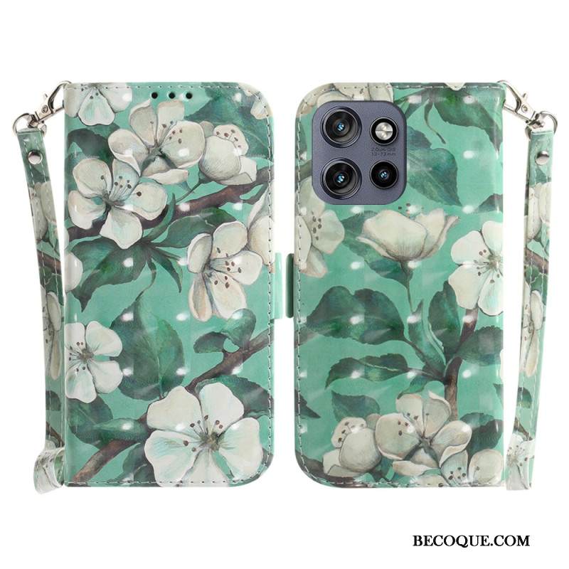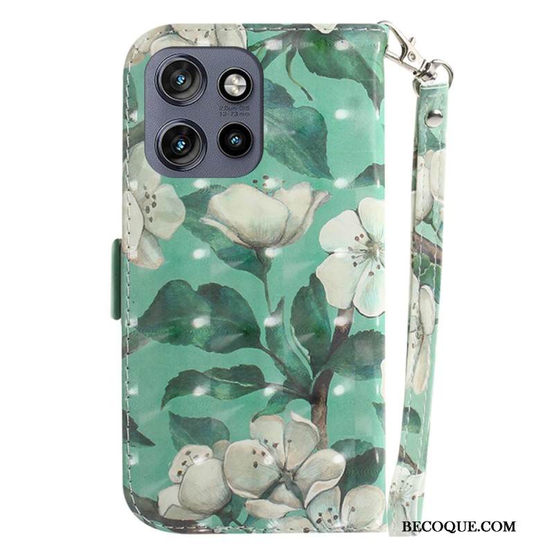 Nahkakotelo Motorola Edge 50 Neo Akvarellikukkia Hihnalla