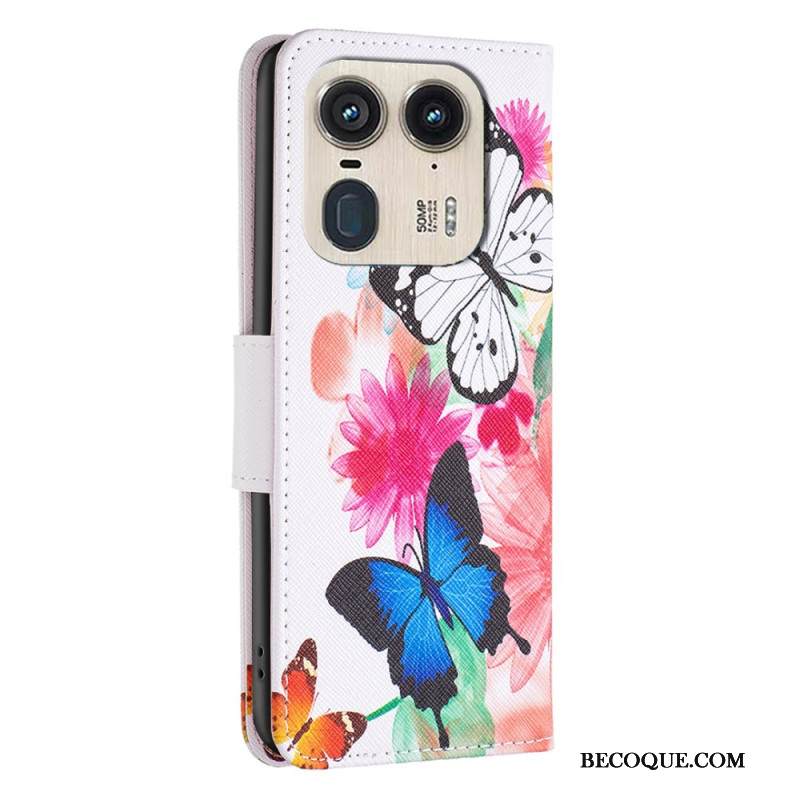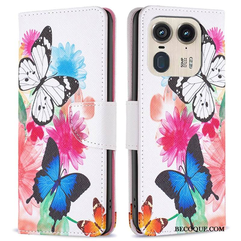 Nahkakotelo Motorola Edge 50 Ultra Kaksi Perhosta