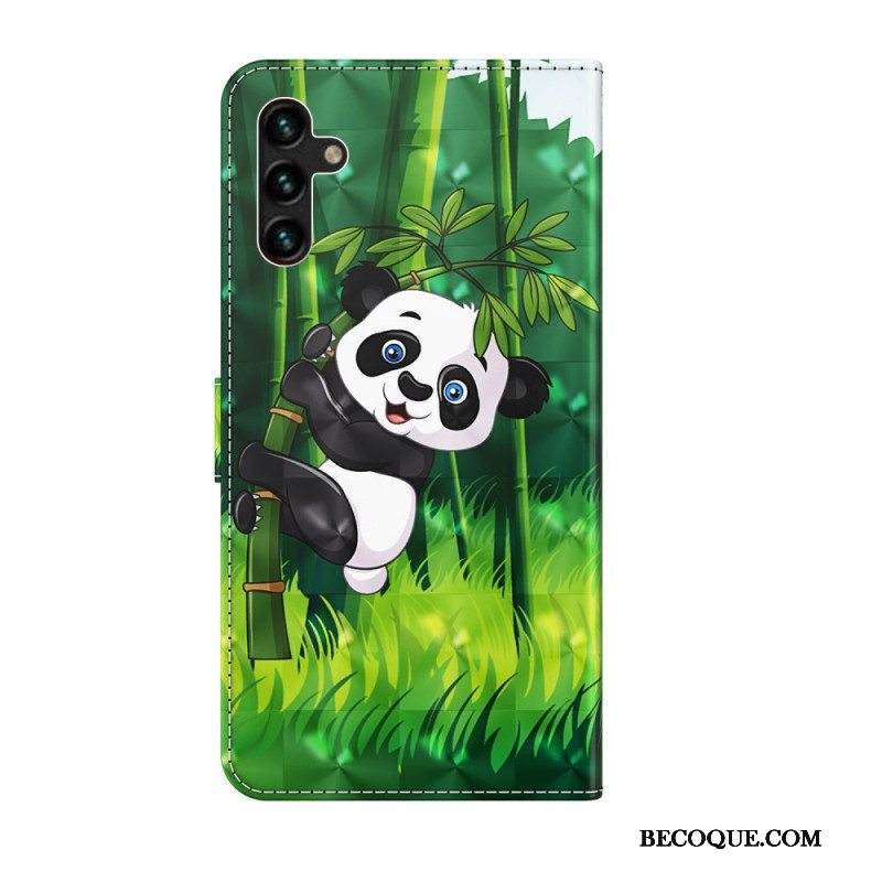 Nahkakotelo Samsung Galaxy A13 5G / A04s Panda Ja Bambu
