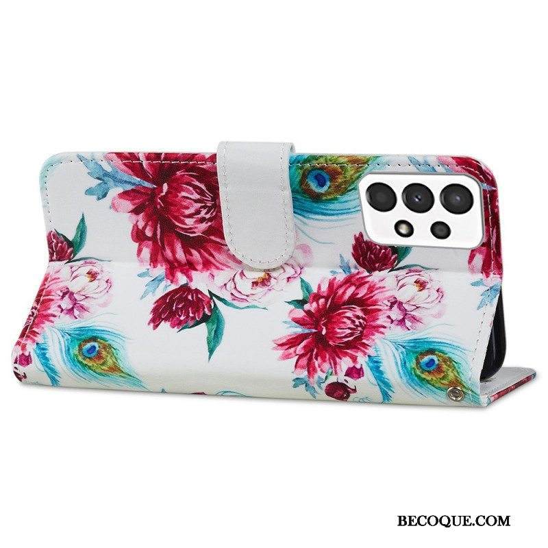 Nahkakotelo Samsung Galaxy A13 Voimakkaat Kukat
