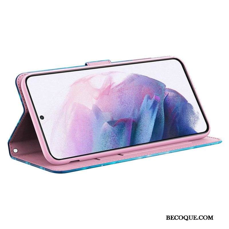 Nahkakotelo Samsung Galaxy A14 / A14 5G Suojaketju Kuori Stringit Perhoset