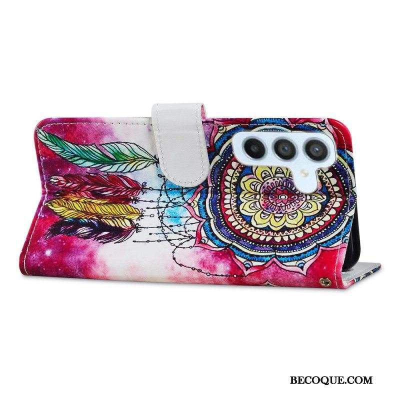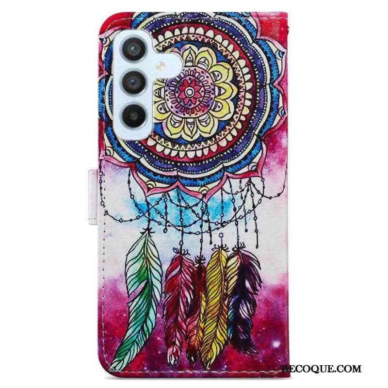 Nahkakotelo Samsung Galaxy A54 5G Suojaketju Kuori Akvarelli Dream Catcher Hihnalla