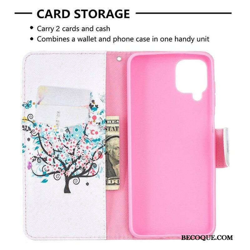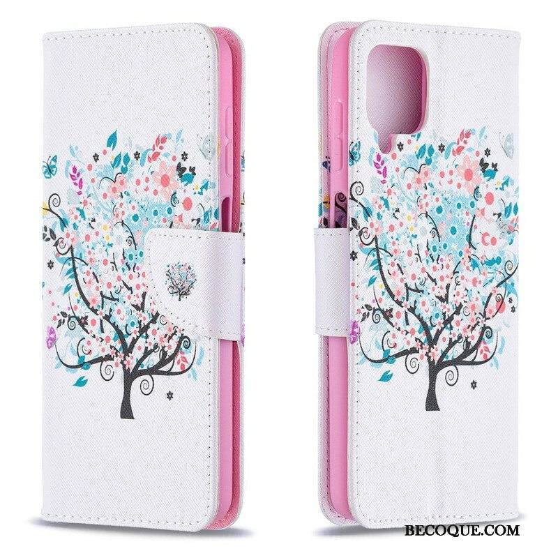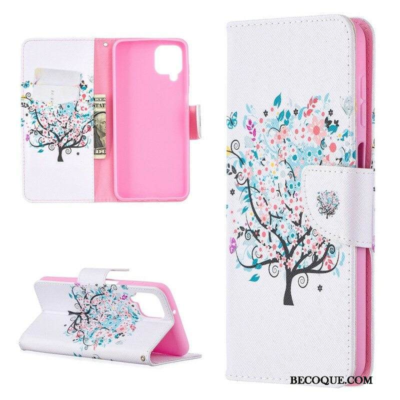 Nahkakotelo Samsung Galaxy M12 / A12 Kukkiva Puu