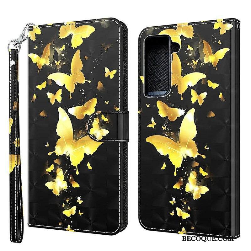 Nahkakotelo Samsung Galaxy S21 FE Keltaiset Perhoset