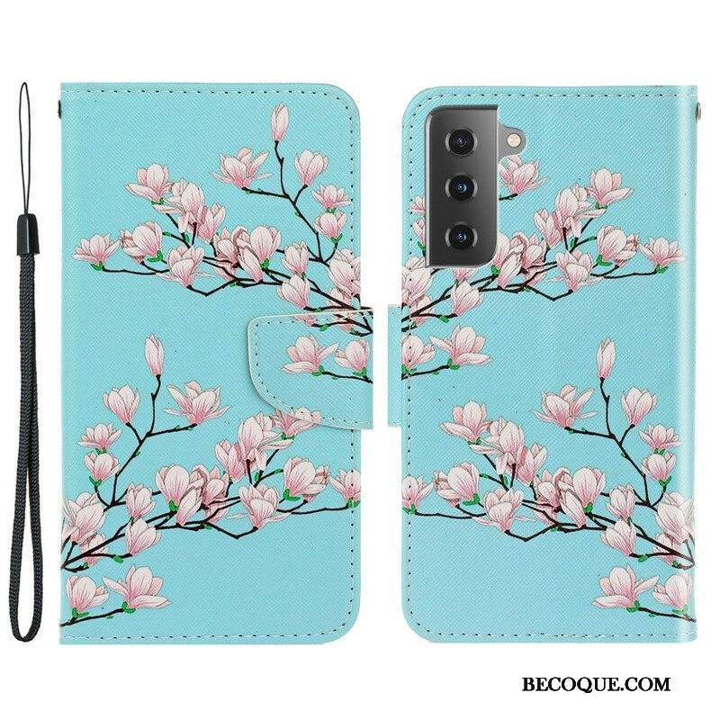 Nahkakotelo Samsung Galaxy S21 FE Suojaketju Kuori Strappy Pensas