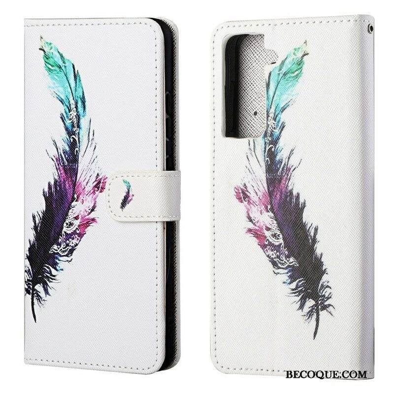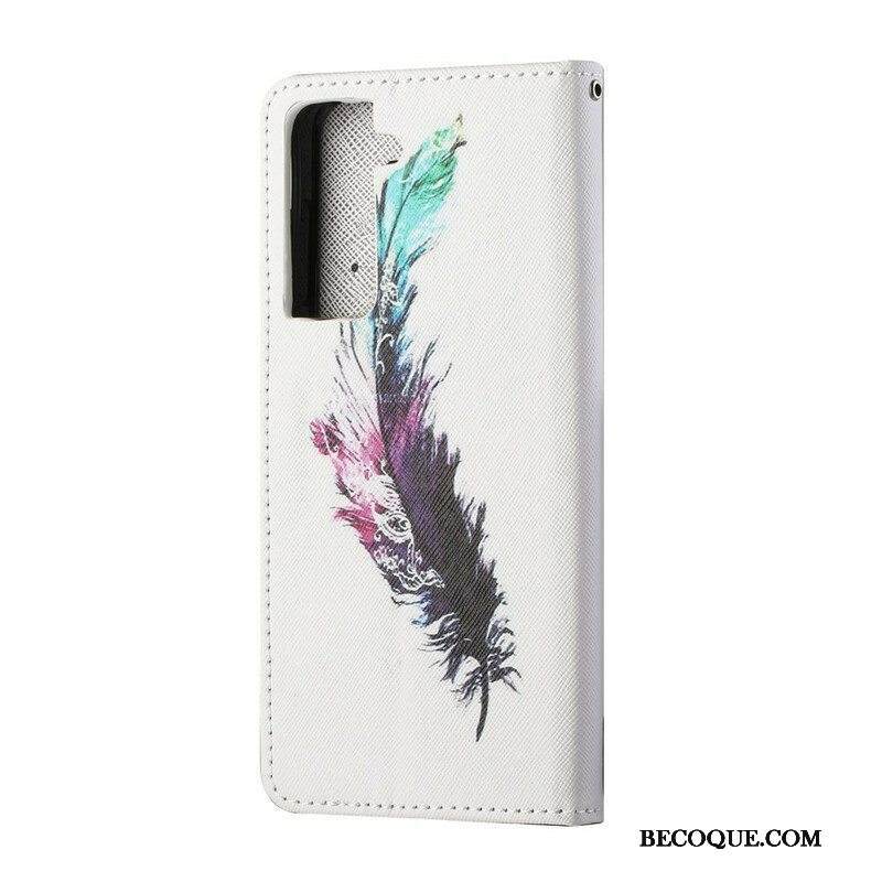 Nahkakotelo Samsung Galaxy S21 FE Suojaketju Kuori Sulka Kaulanauhalla