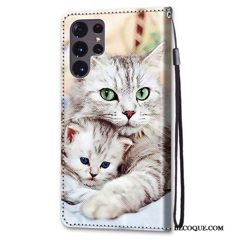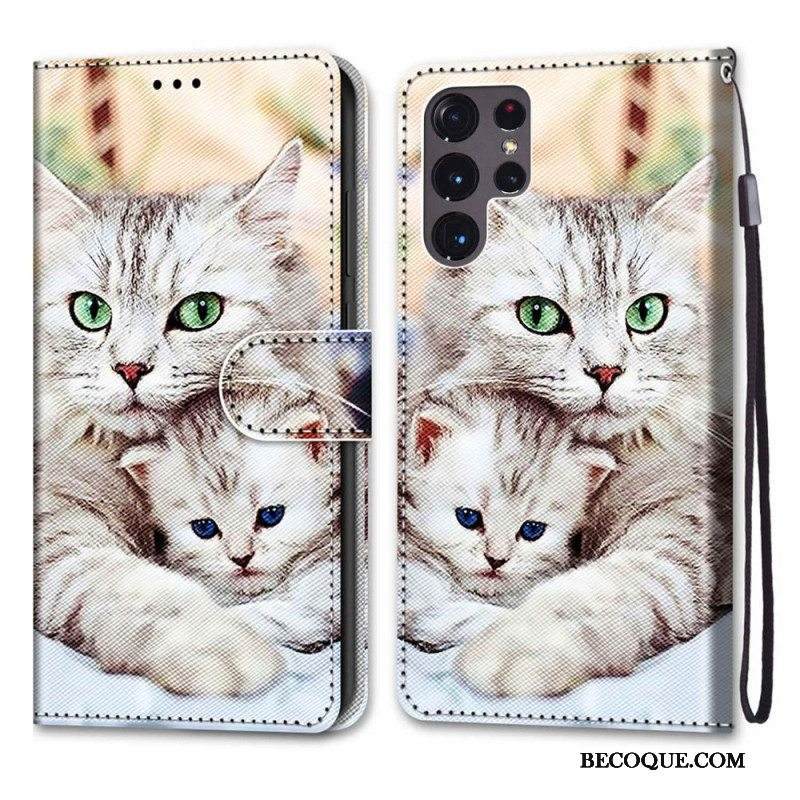 Nahkakotelo Samsung Galaxy S22 Ultra 5G Kissan Perhe