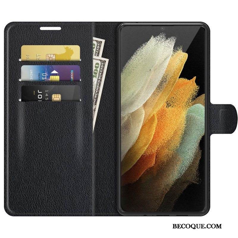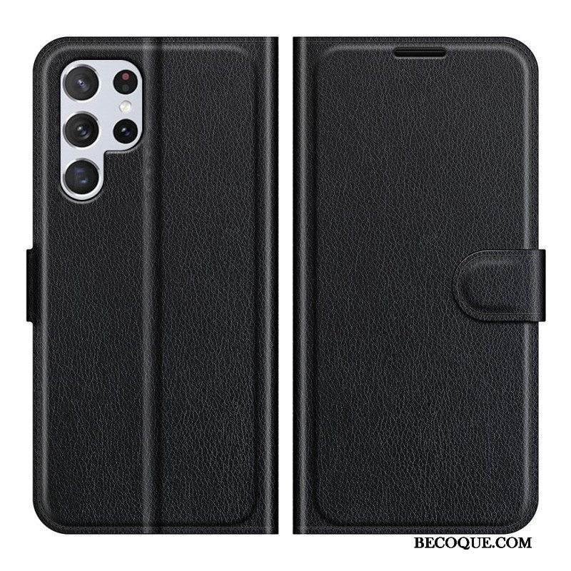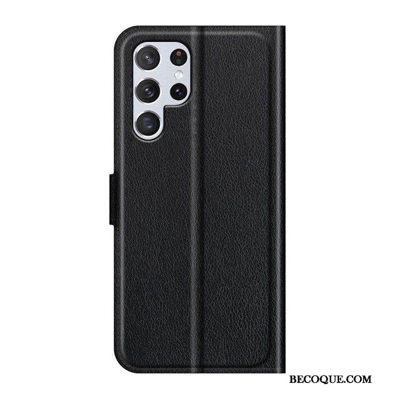 Nahkakotelo Samsung Galaxy S22 Ultra 5G Klassinen Litsi-nahkaefekti