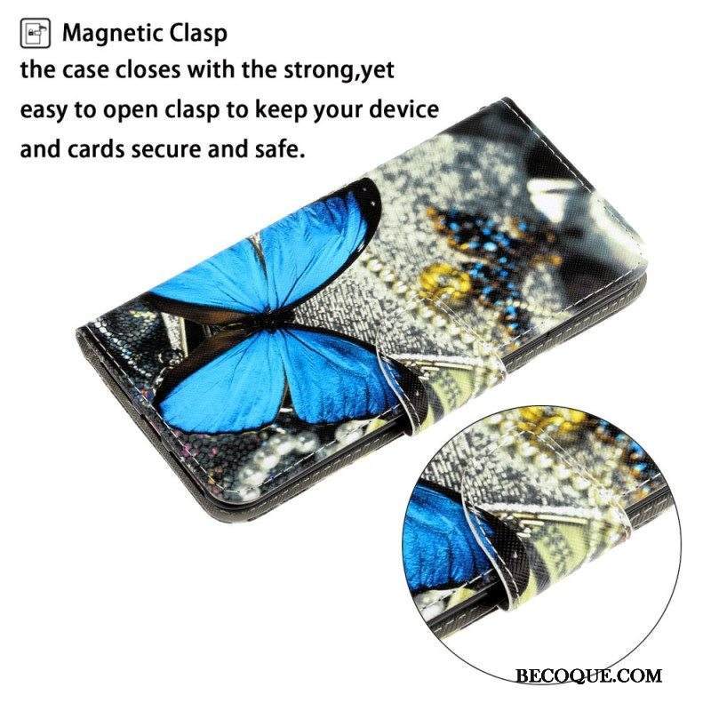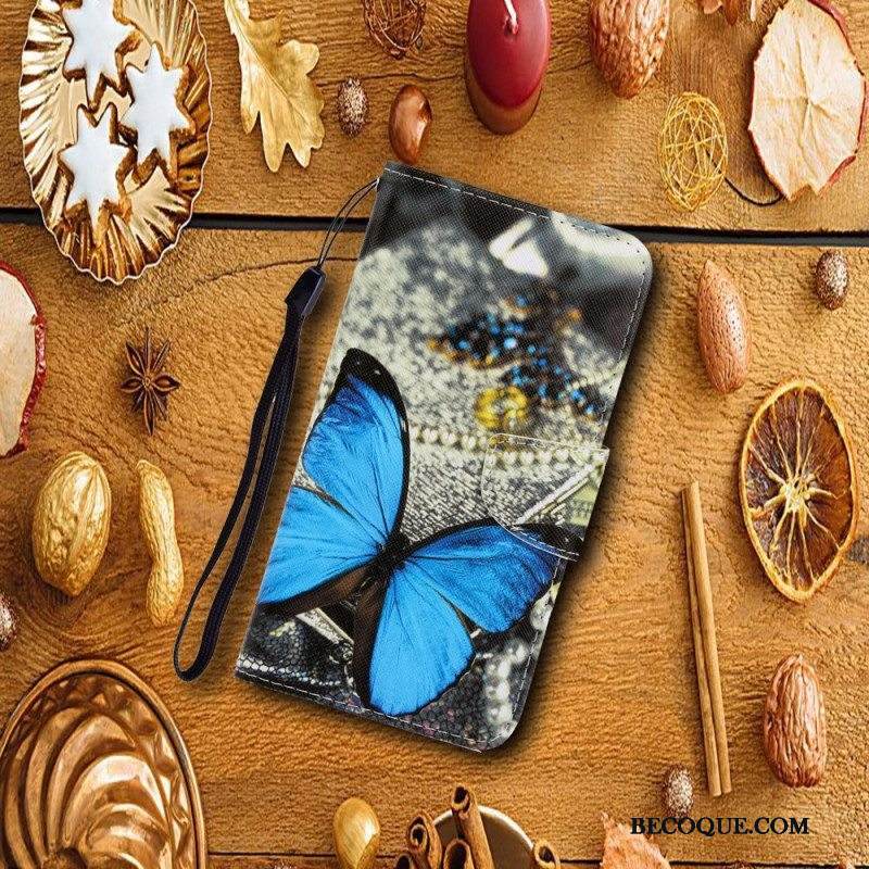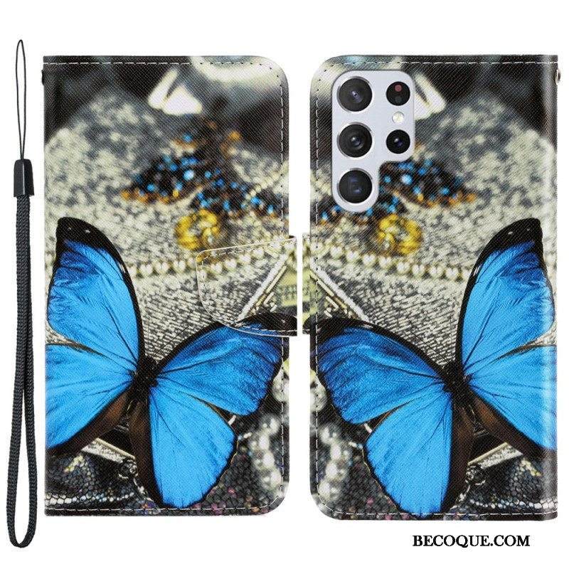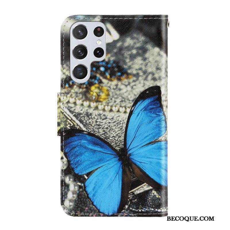 Nahkakotelo Samsung Galaxy S22 Ultra 5G Suojaketju Kuori Perhosten Hihnan Muunnelmia