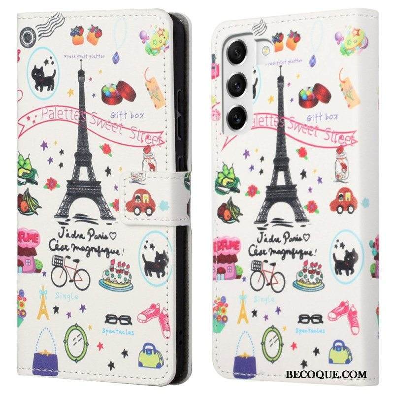 Nahkakotelo Samsung Galaxy S23 5G Rakastan Pariisia