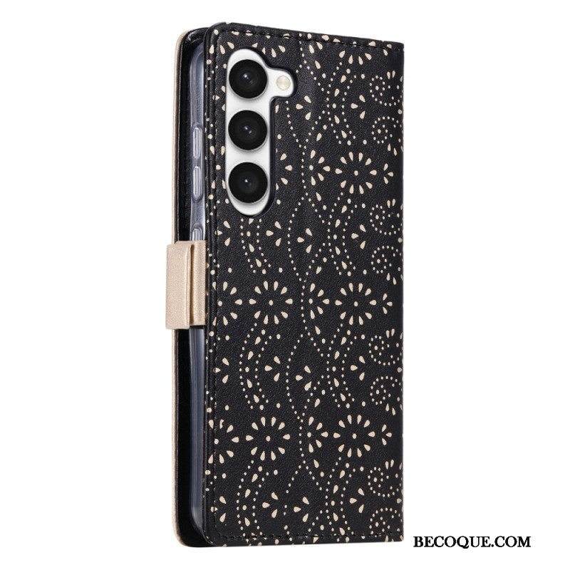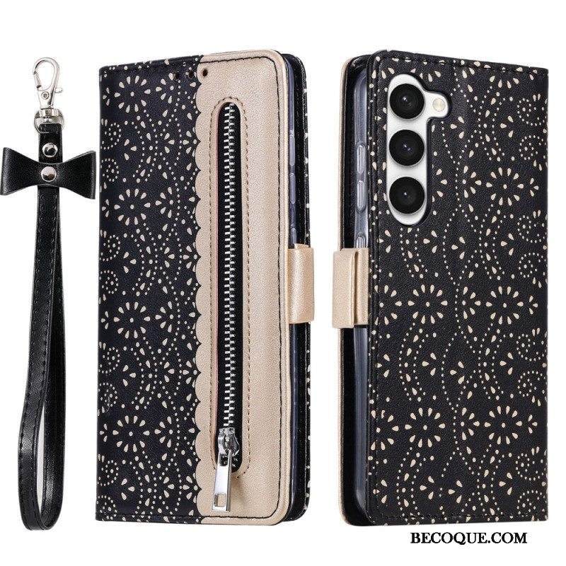 Nahkakotelo Samsung Galaxy S23 Plus 5G Suojaketju Kuori Pitsihihna Kolikkokukkaro