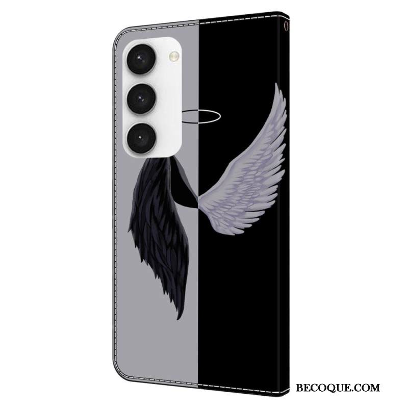 Nahkakotelo Samsung Galaxy S24 5g Valkoiset Ja Mustat Siivet