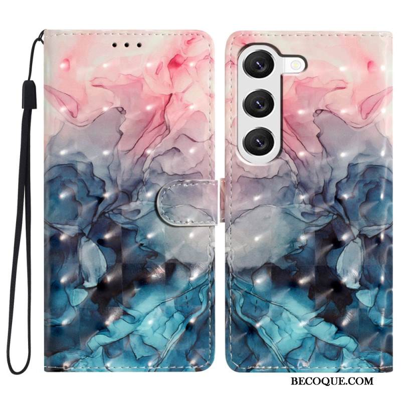 Nahkakotelo Samsung Galaxy S24 Plus 5g Pinkkisininen Marmori Hihnalla