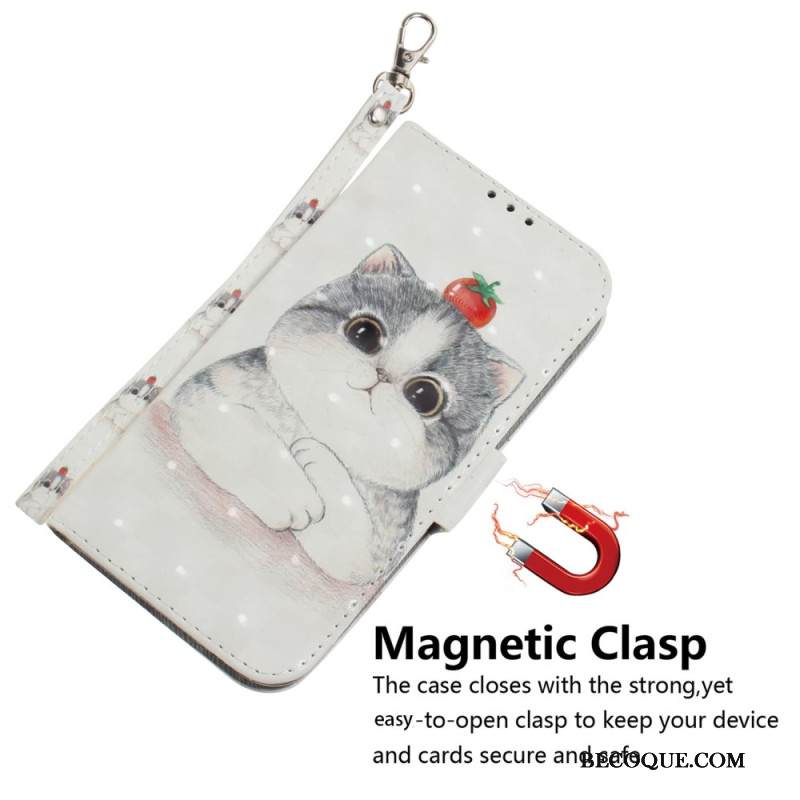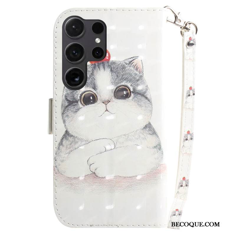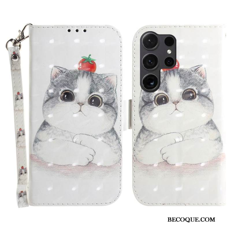 Nahkakotelo Samsung Galaxy S24 Ultra 5g Kissa Ja Mansikka Hihnalla