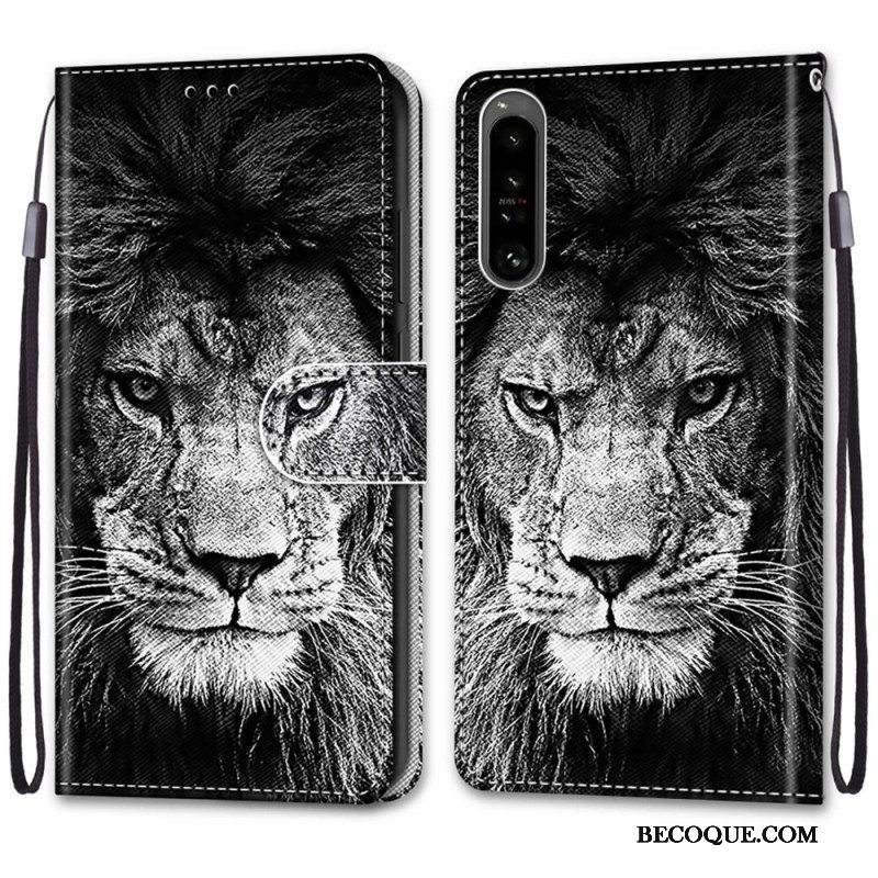 Nahkakotelo Sony Xperia 1 IV Suojaketju Kuori Lanyard Lion