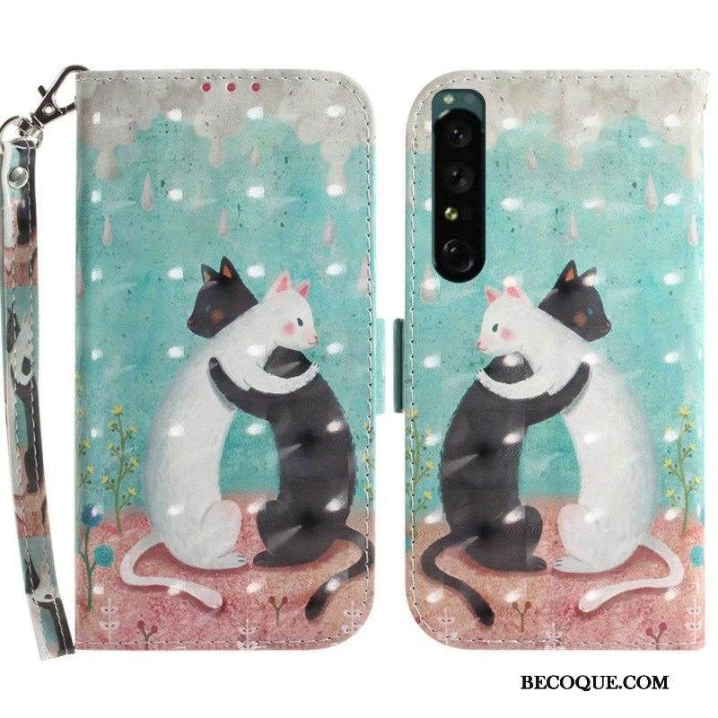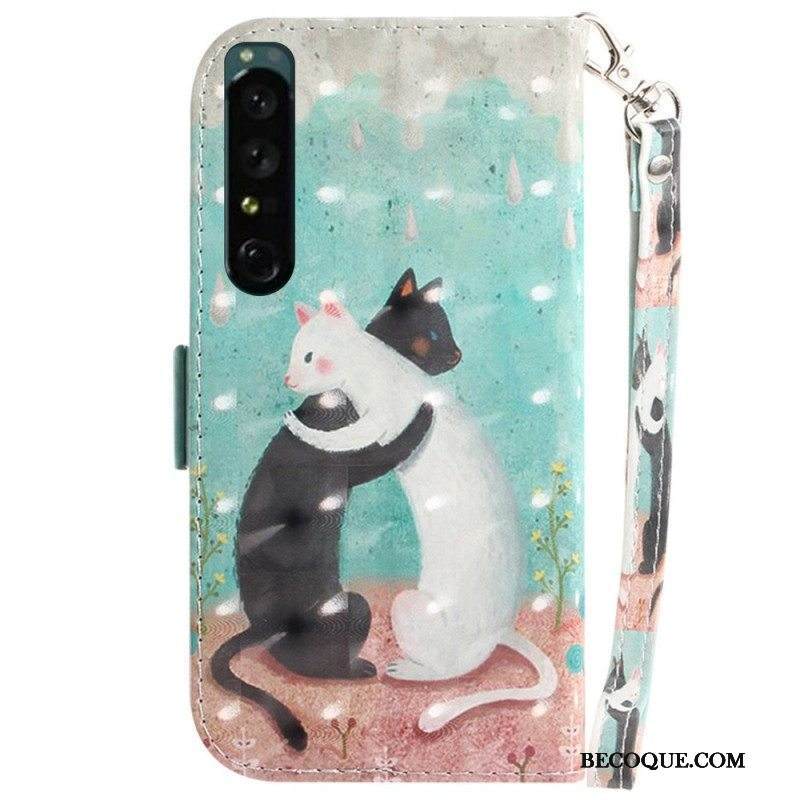 Nahkakotelo Sony Xperia 1 IV Suojaketju Kuori Thong Kissat