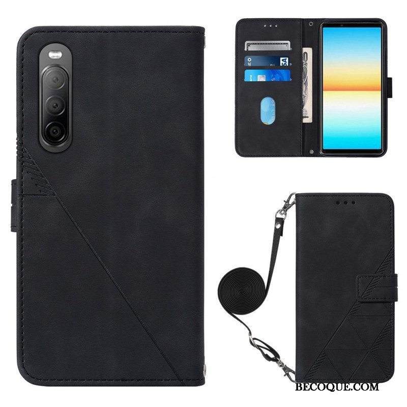 Nahkakotelo Sony Xperia 10 IV Kolmiokuvio Olkahihnalla