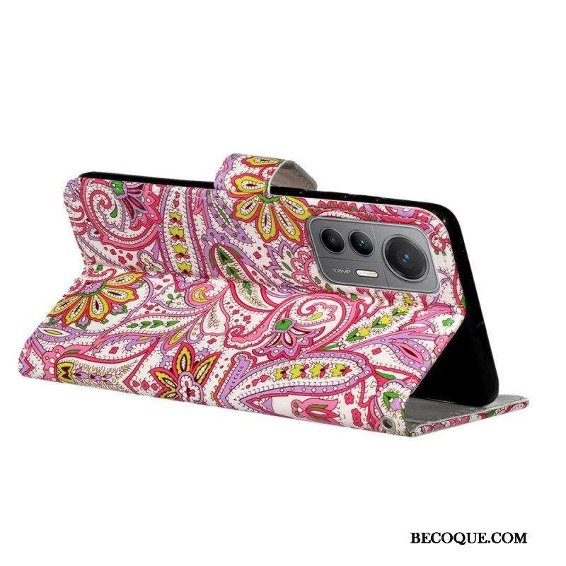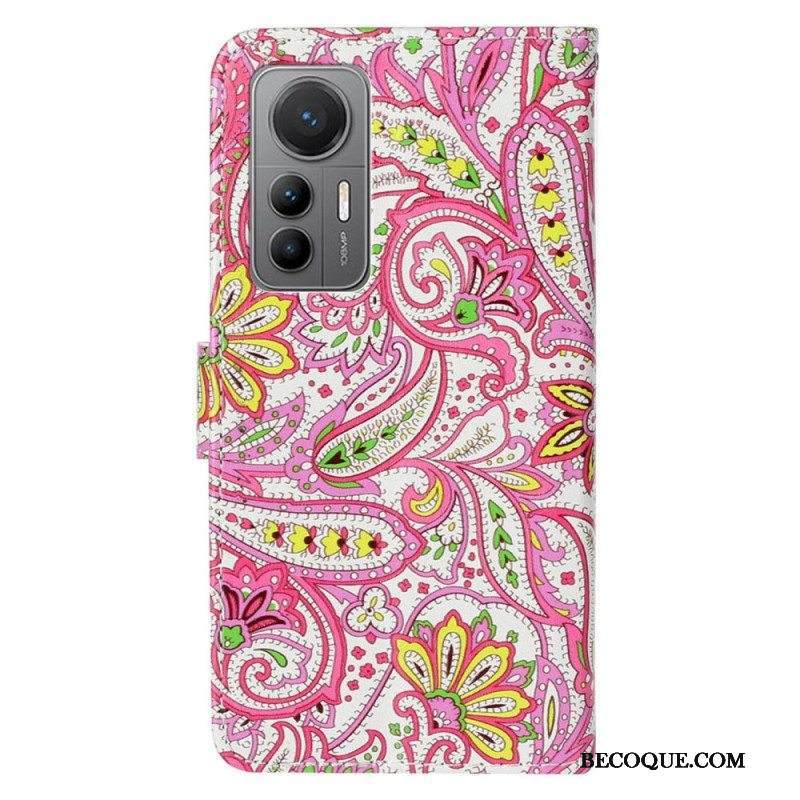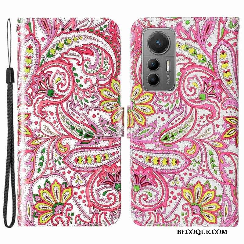 Nahkakotelo Xiaomi 12 Lite Suojaketju Kuori Strappy Paisley -kuvio
