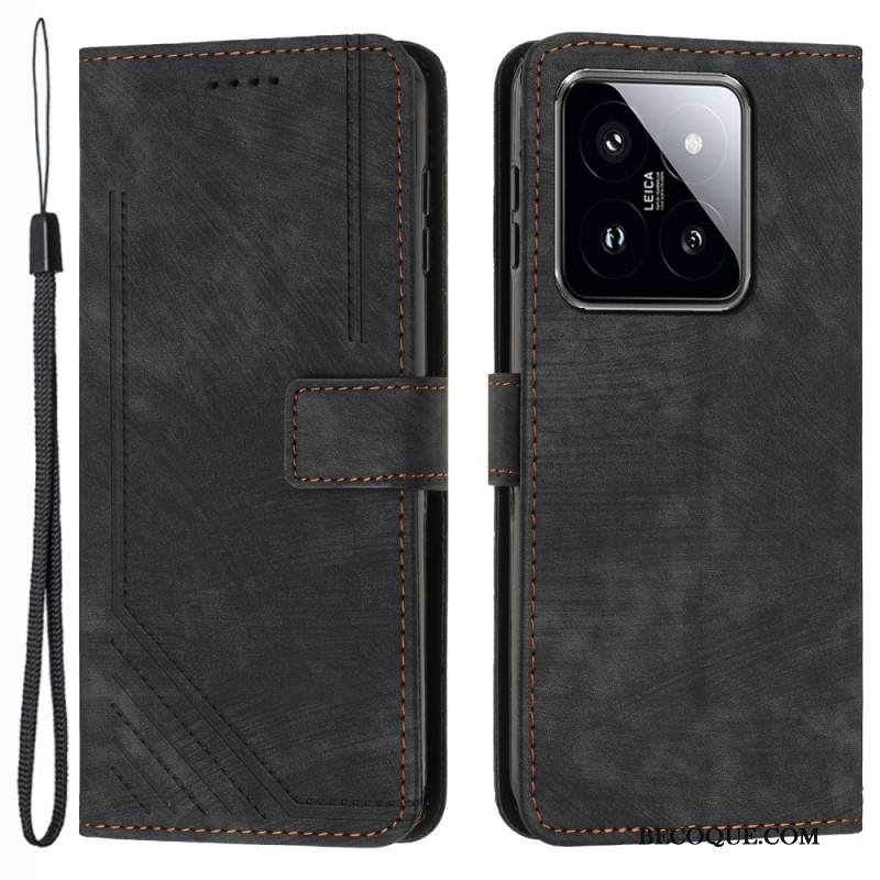 Nahkakotelo Xiaomi 14 Nahkatyyliset Painolinjat