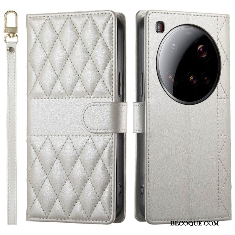 Nahkakotelo Xiaomi 15 Ultra Tikattu Hihna Ja Olkahihna