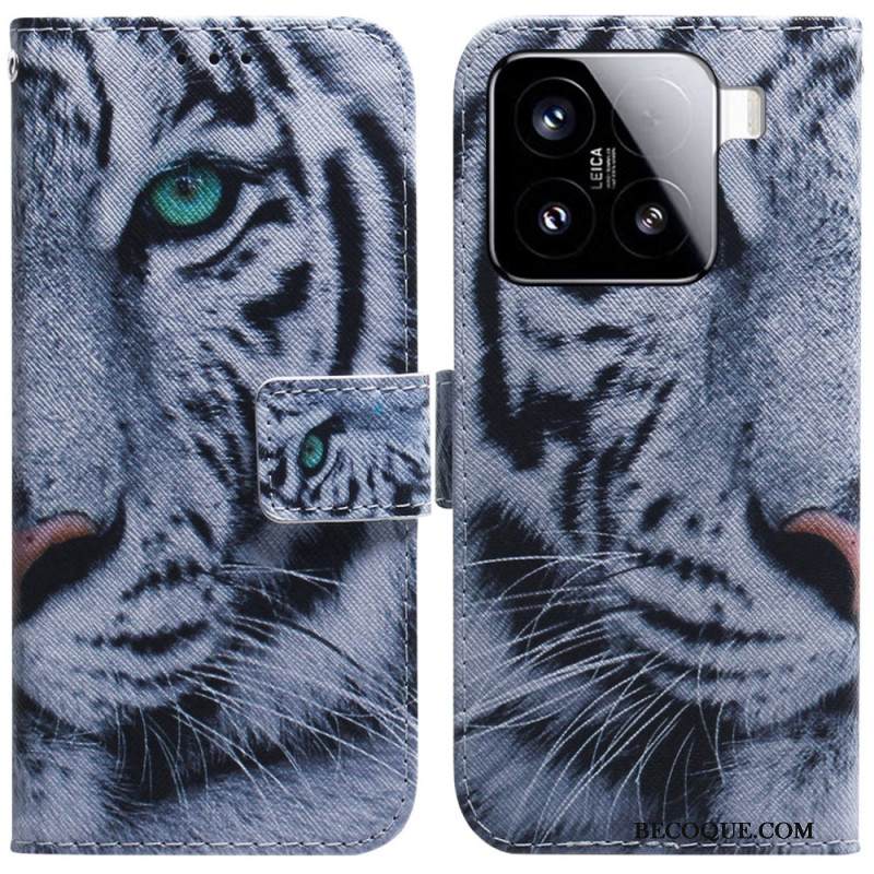 Nahkakotelo Xiaomi 15 Valkoinen Tiikeri