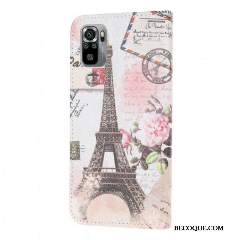 Nahkakotelo Xiaomi Redmi Note 10 / 10S Retro Eiffel-torni
