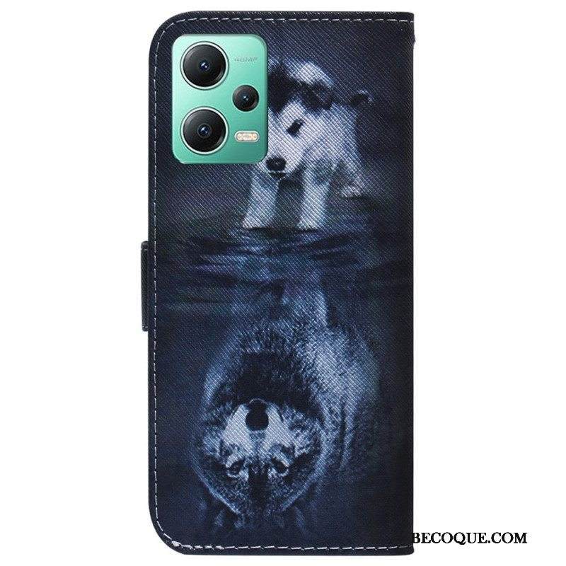 Nahkakotelo Xiaomi Redmi Note 12 5G Suojaketju Kuori Strappy Puppy Dream