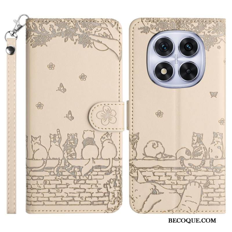 Nahkakotelo Xiaomi Redmi Note 14 Pro 5g Kissakuvio Ja Hihna