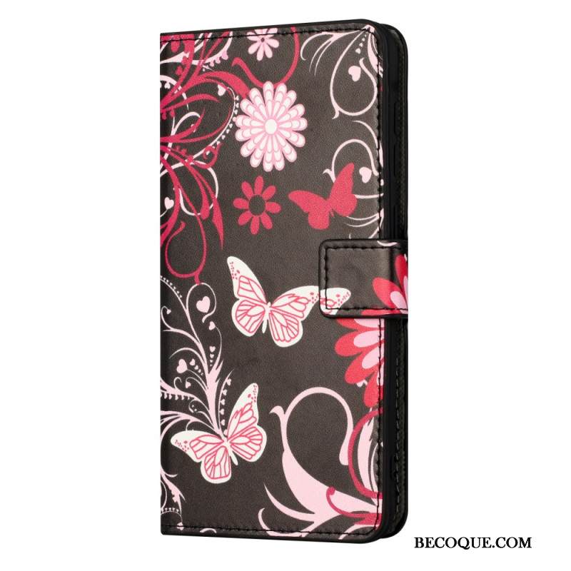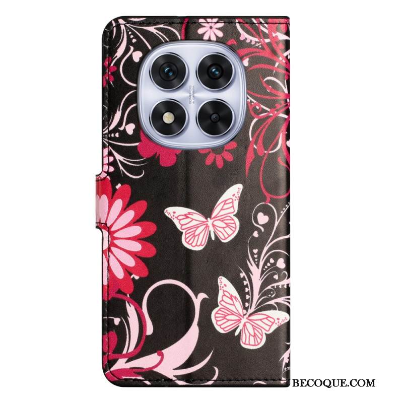 Nahkakotelo Xiaomi Redmi Note 15 Pro 5g Perhosia Mustalla Taustalla