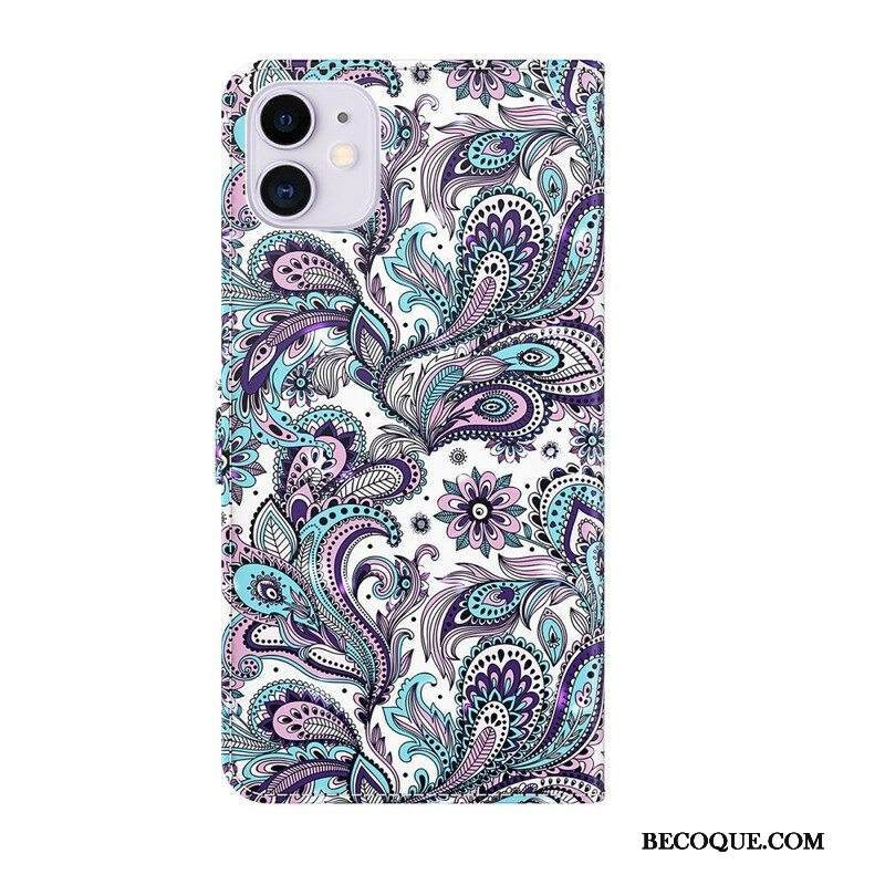 Nahkakotelo iPhone 13 Mini Kukkakuvioita