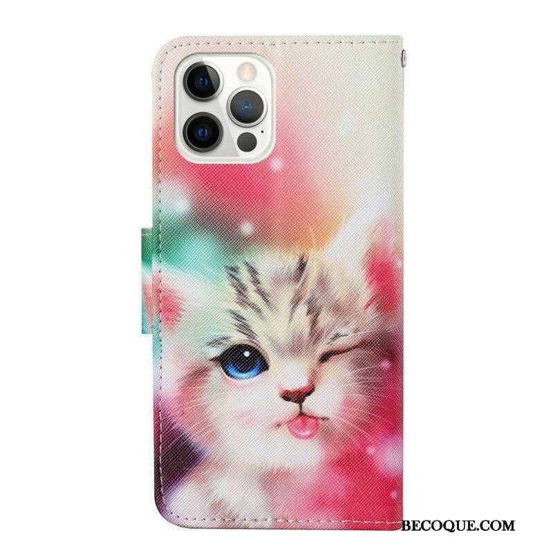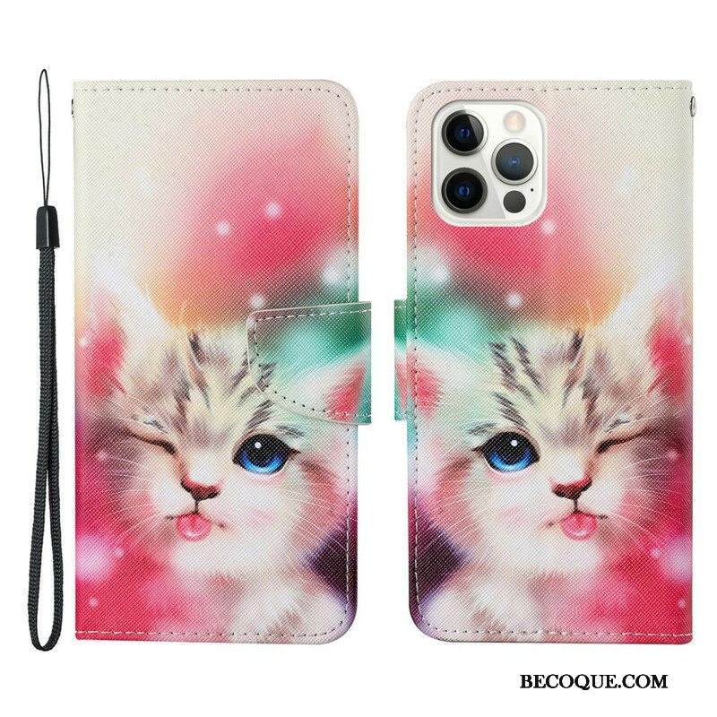 Nahkakotelo iPhone 13 Pro Kissatarinoita Kaulanauhan Kanssa