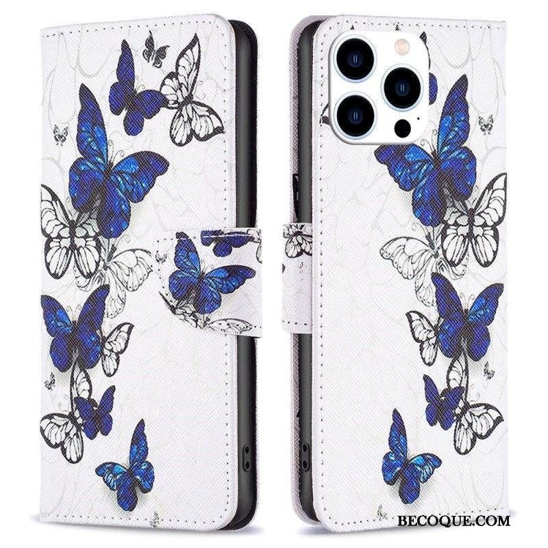 Nahkakotelo iPhone 14 Pro Perhosia Lennossa