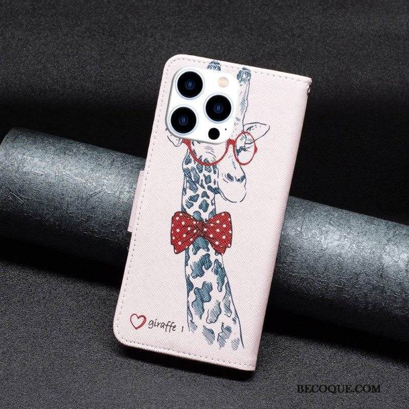 Nahkakotelo iPhone 14 Pro Taitava Kirahvi