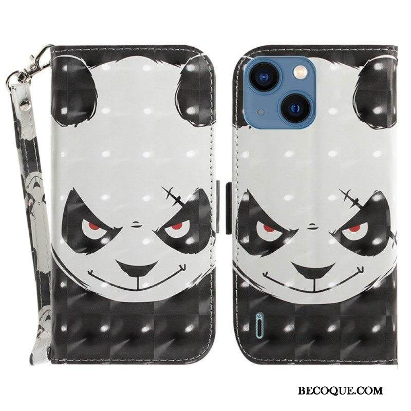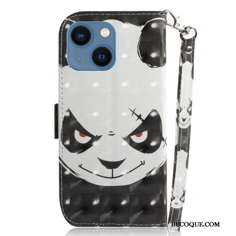 Nahkakotelo iPhone 15 Plus Suojaketju Kuori Vihainen Panda Hihnalla