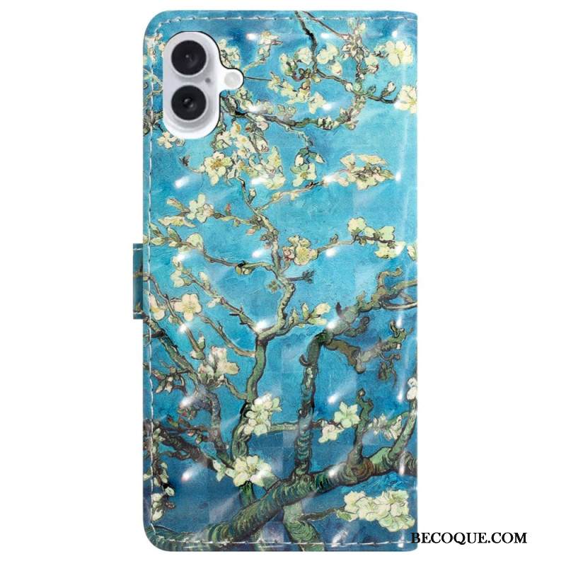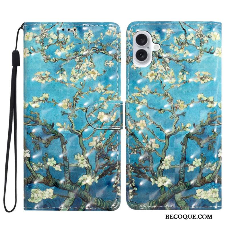 Nahkakotelo iPhone 16 Plus Aprikoosin Kukkia Hihnalla