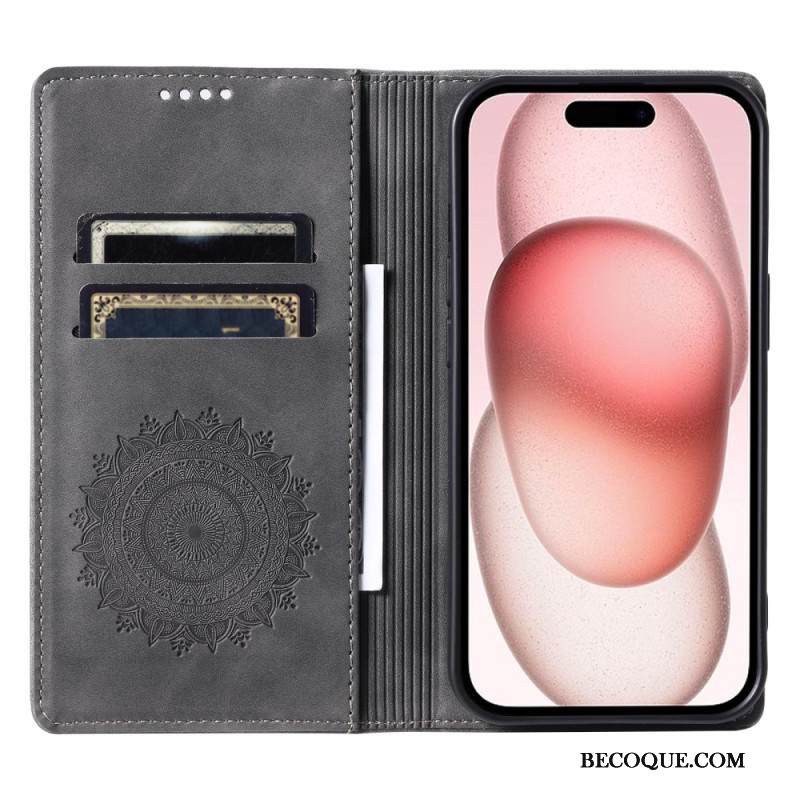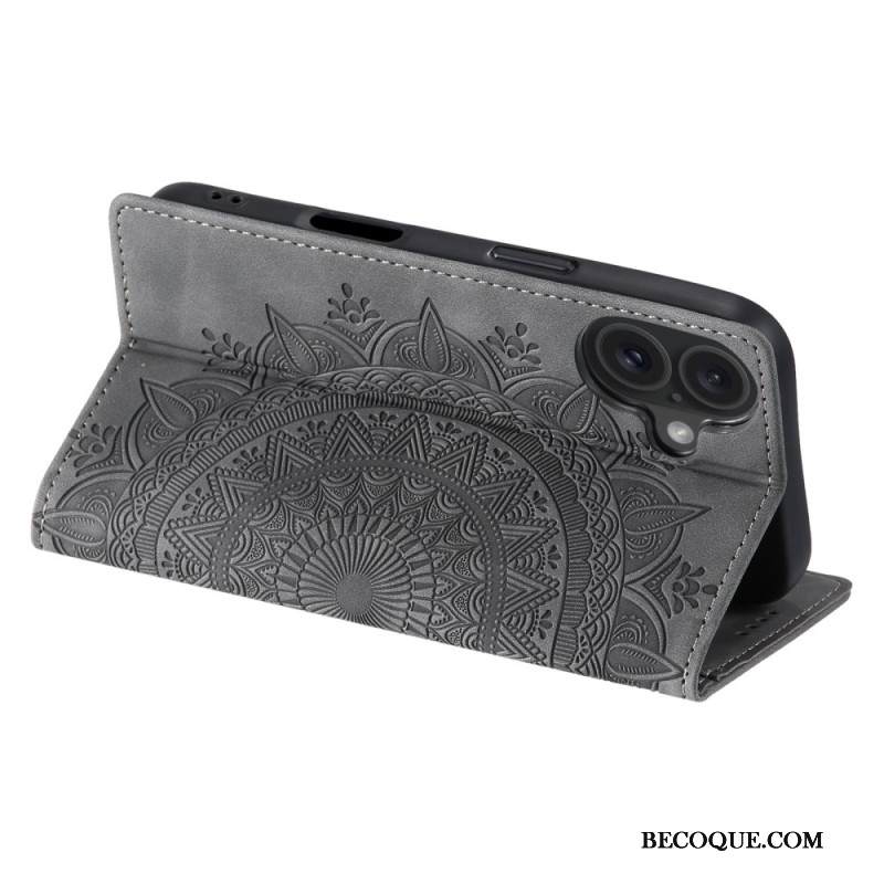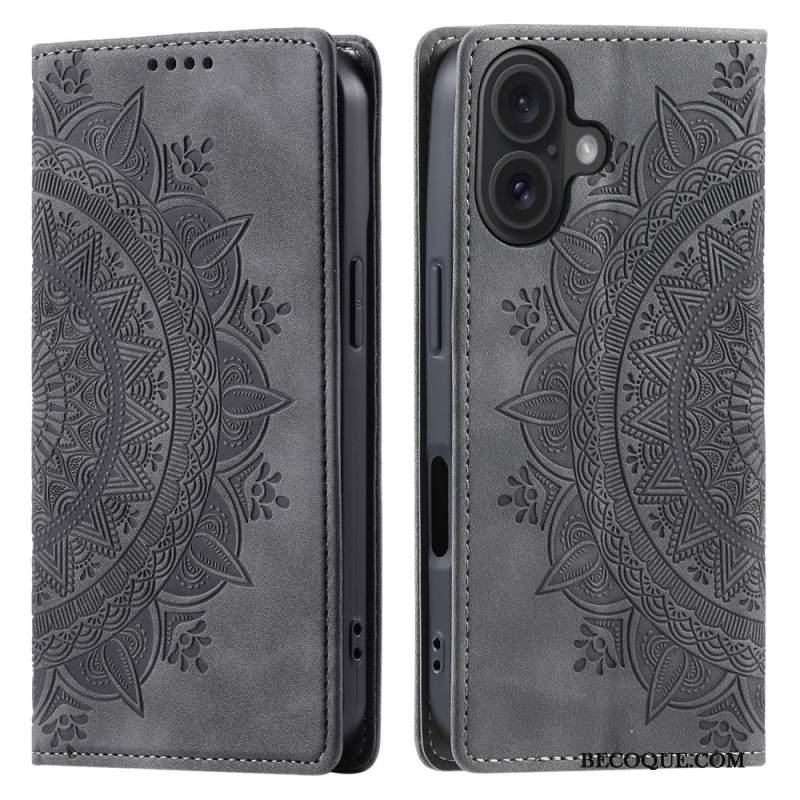 Nahkakotelo iPhone 16 Plus Mandala Mokkanahkaefekti