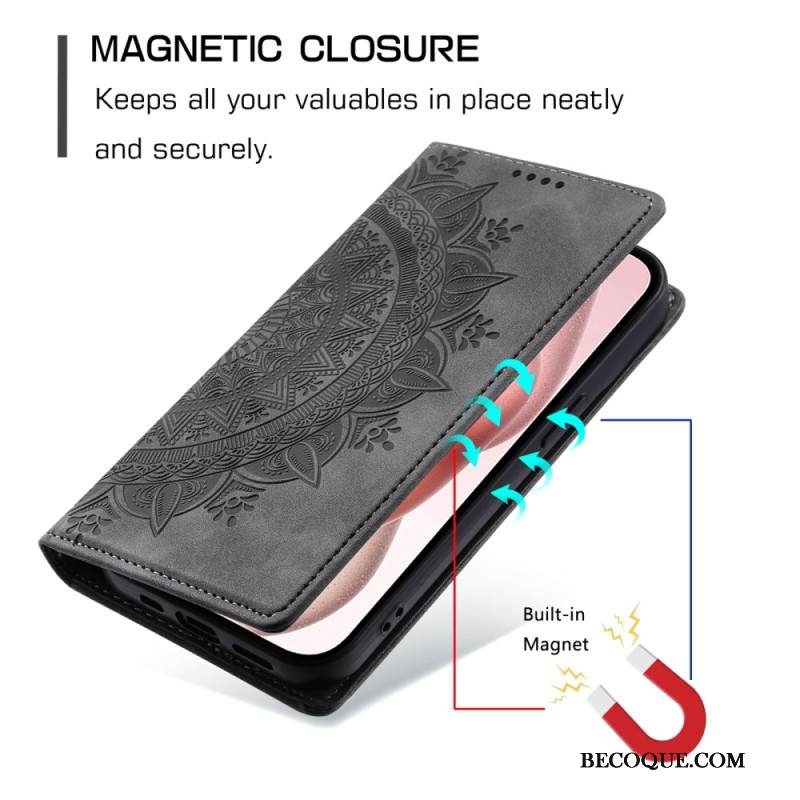 Nahkakotelo iPhone 16 Pro Max Puhelinkuoret Mandala Mokkanahkaefekti