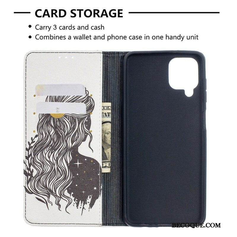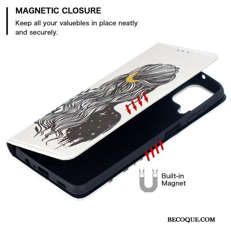 Puhelinkuoret Samsung Galaxy M12 / A12 Kotelot Flip Kauniit Hiukset