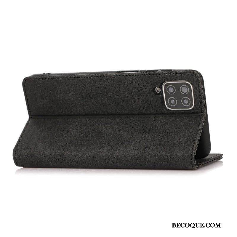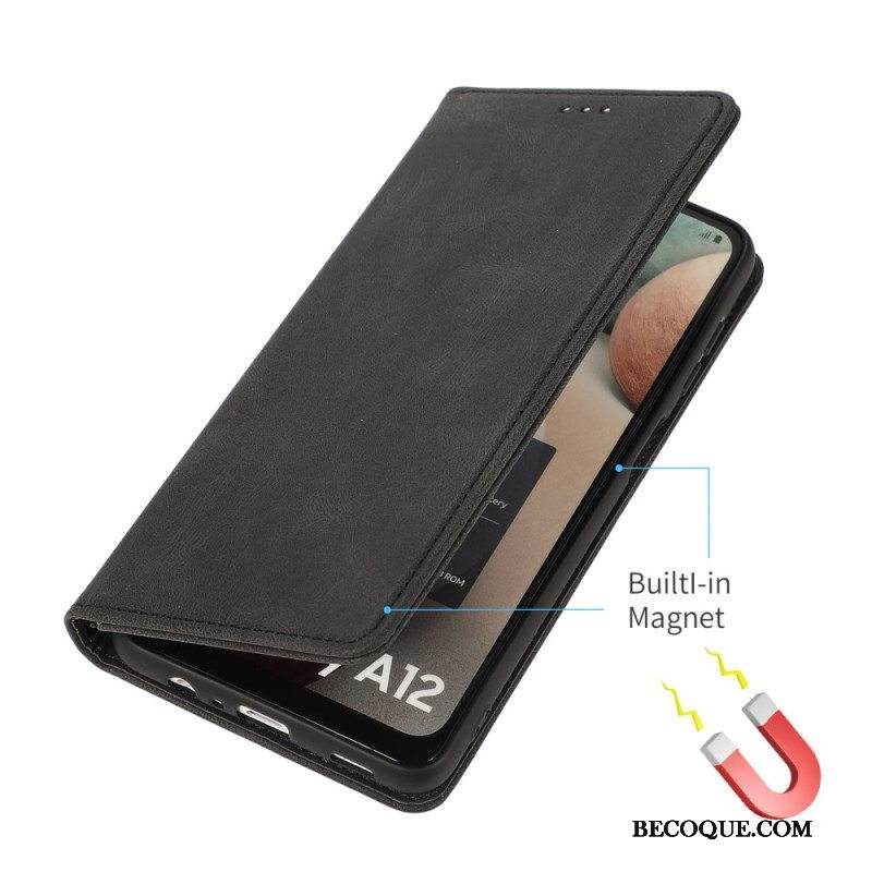 Puhelinkuoret Samsung Galaxy M12 / A12 Kotelot Flip Silky Touch -nahkaefekti