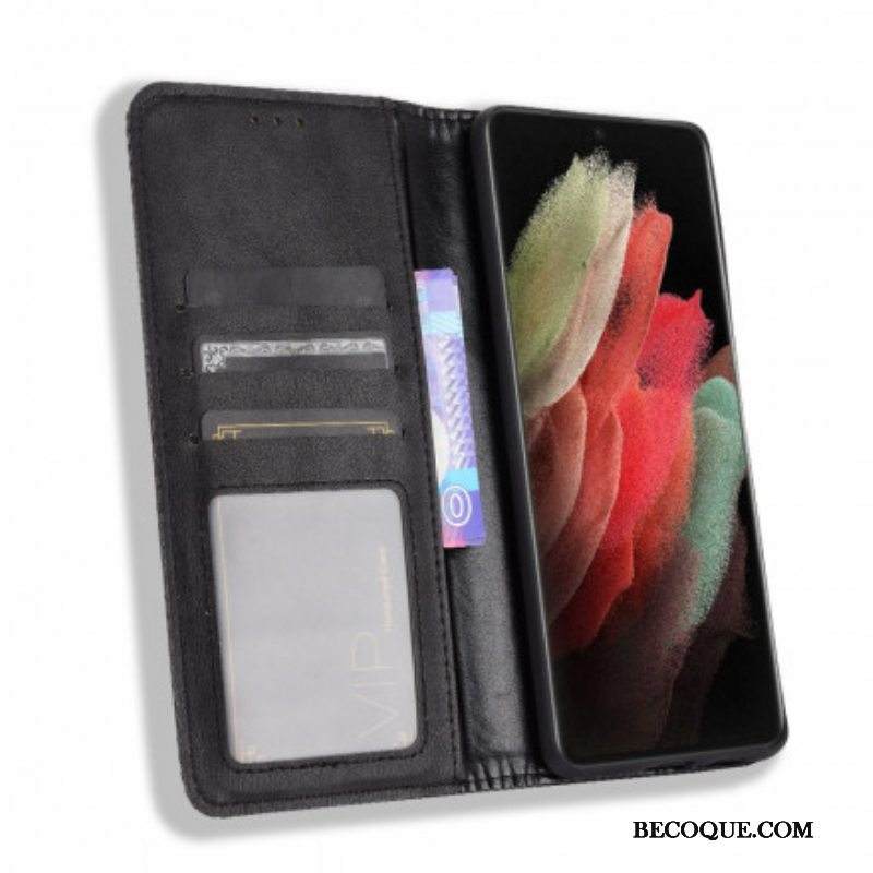 Puhelinkuoret Samsung Galaxy S21 Ultra 5G Kotelot Flip Tyylitelty Vintage-nahkaefekti
