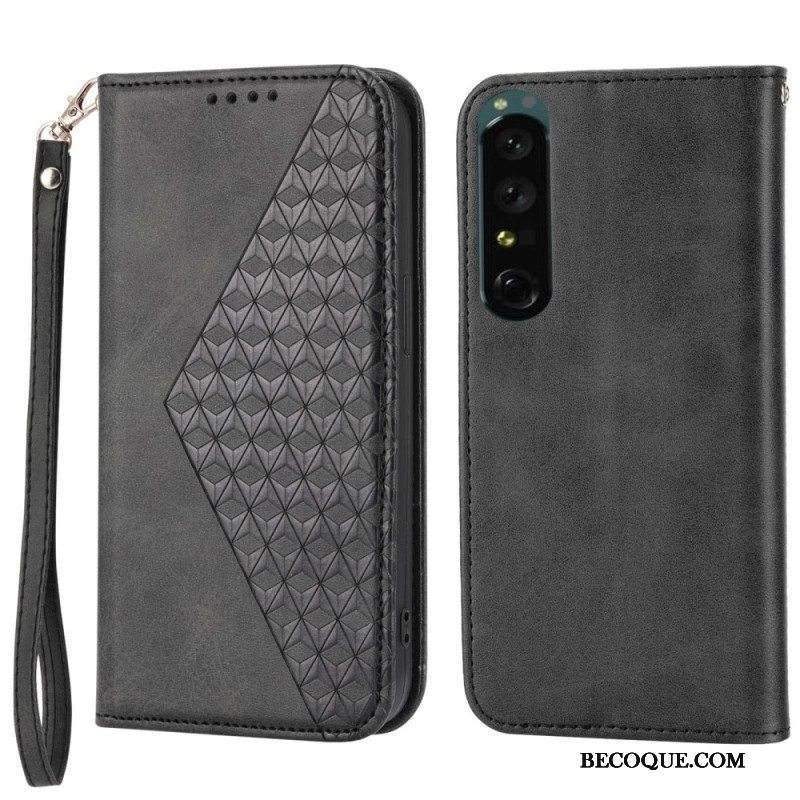Puhelinkuoret Sony Xperia 1 IV Kotelot Flip 3d-kuvioinen Nahkatyyli Hihnalla