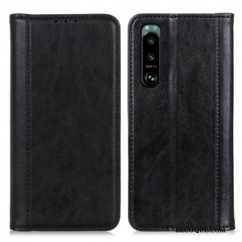 Puhelinkuoret Sony Xperia 5 III Kotelot Flip Klassinen Haljattu Litsi-nahka