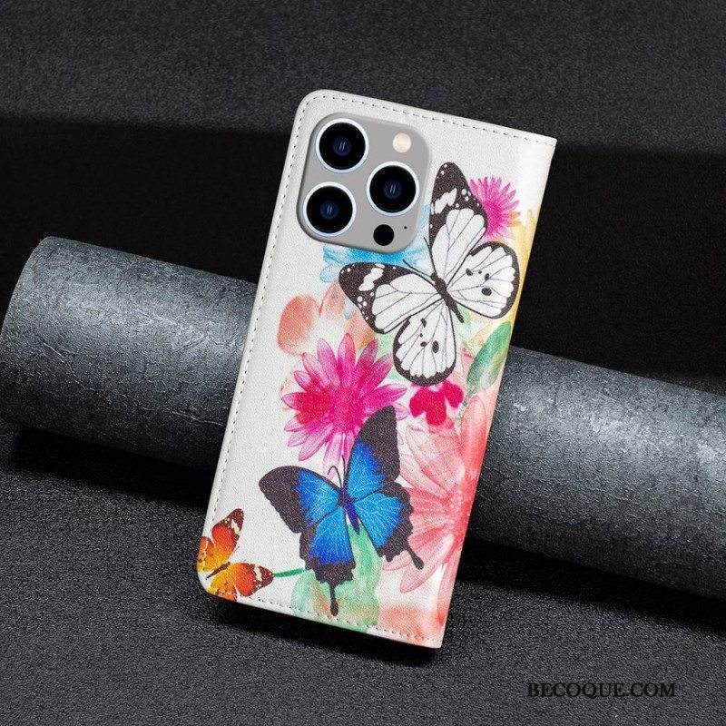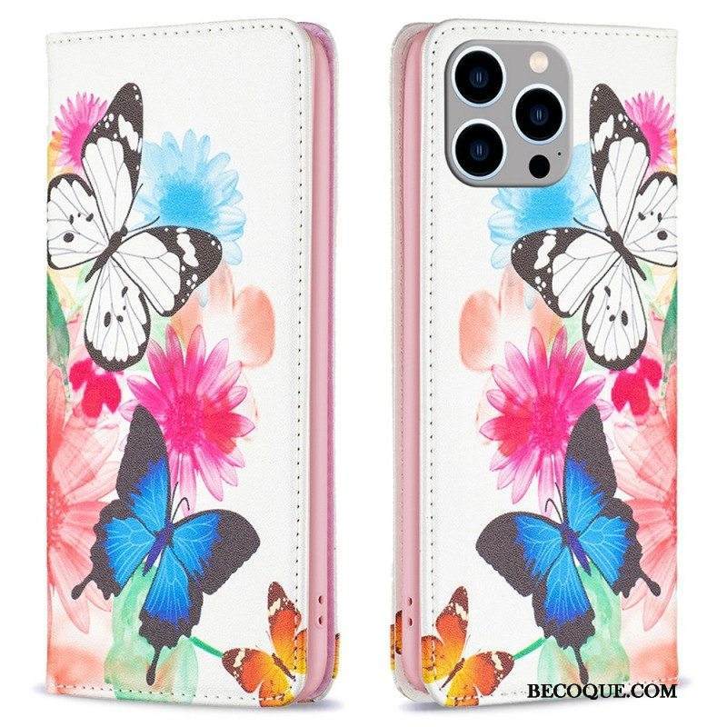 Puhelinkuoret iPhone 14 Pro Max Kotelot Flip Perhosia