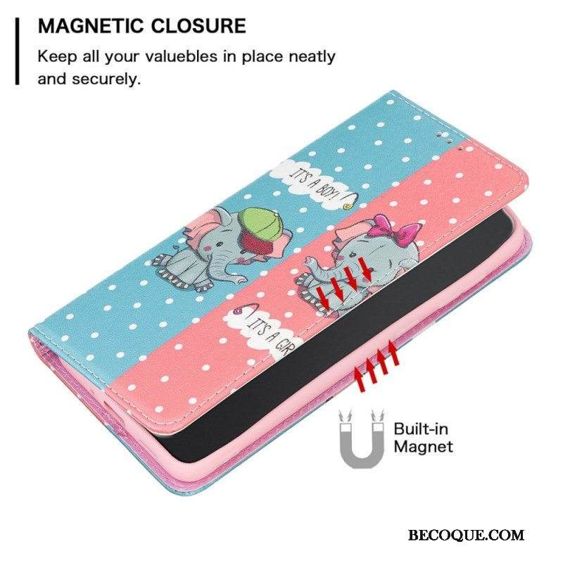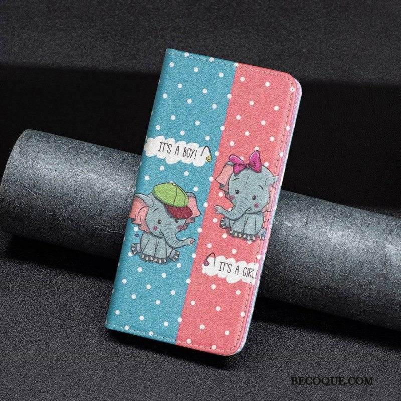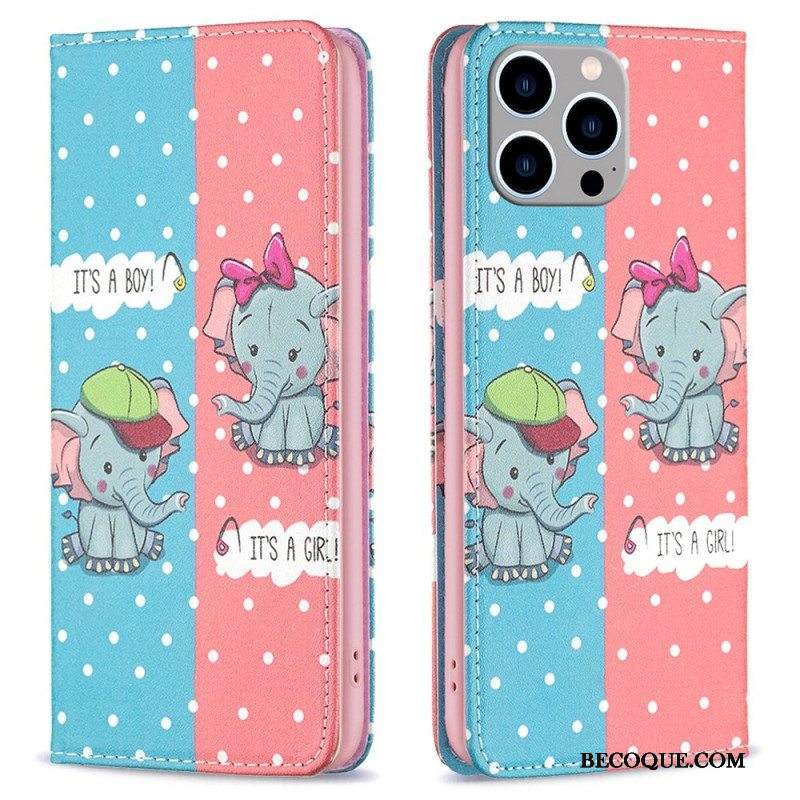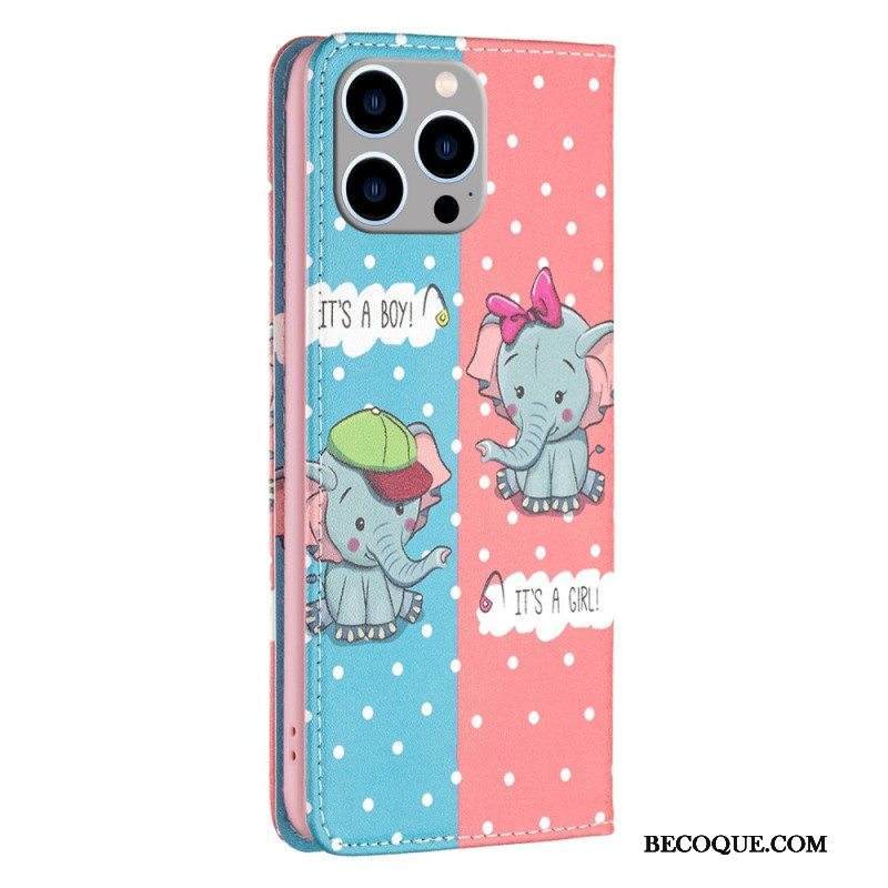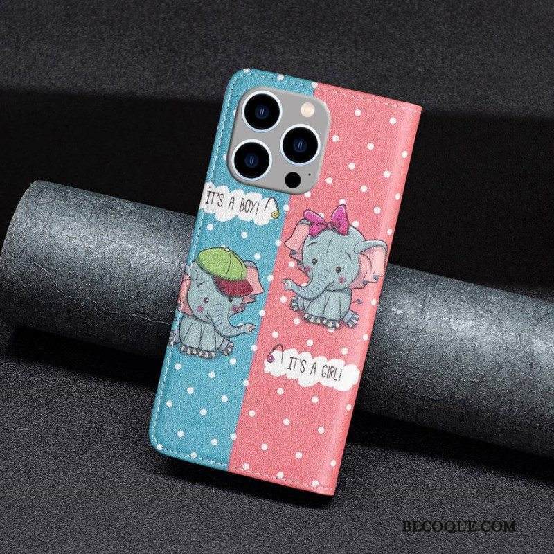 Puhelinkuoret iPhone 14 Pro Max Kotelot Flip Vauvat Norsut