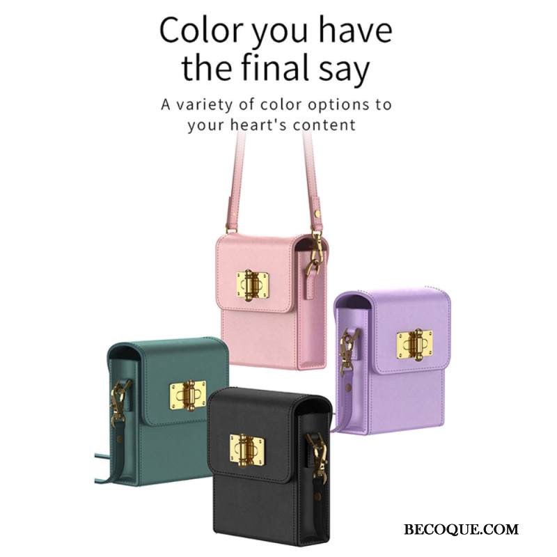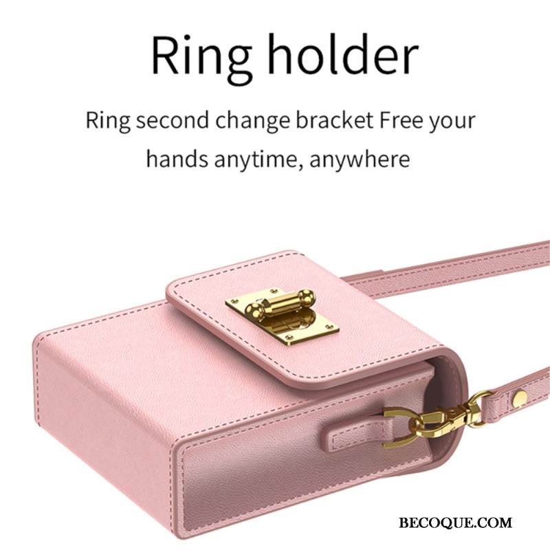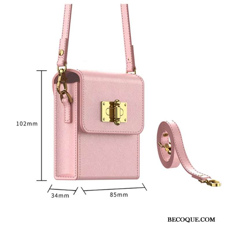 Kuori Samsung Galaxy Z Flip 5 Nahkainen Korttipidike Ja Olkahihna